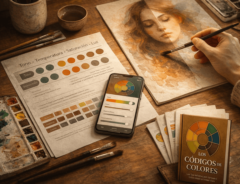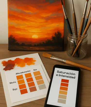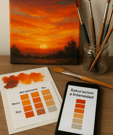 Aquí entiendes cómo la temperatura afecta la sensación visual de una obra. Aprendes a identificar dominantes cálidas o frías y a usarlas para crear profundidad, contraste y coherencia emocional.